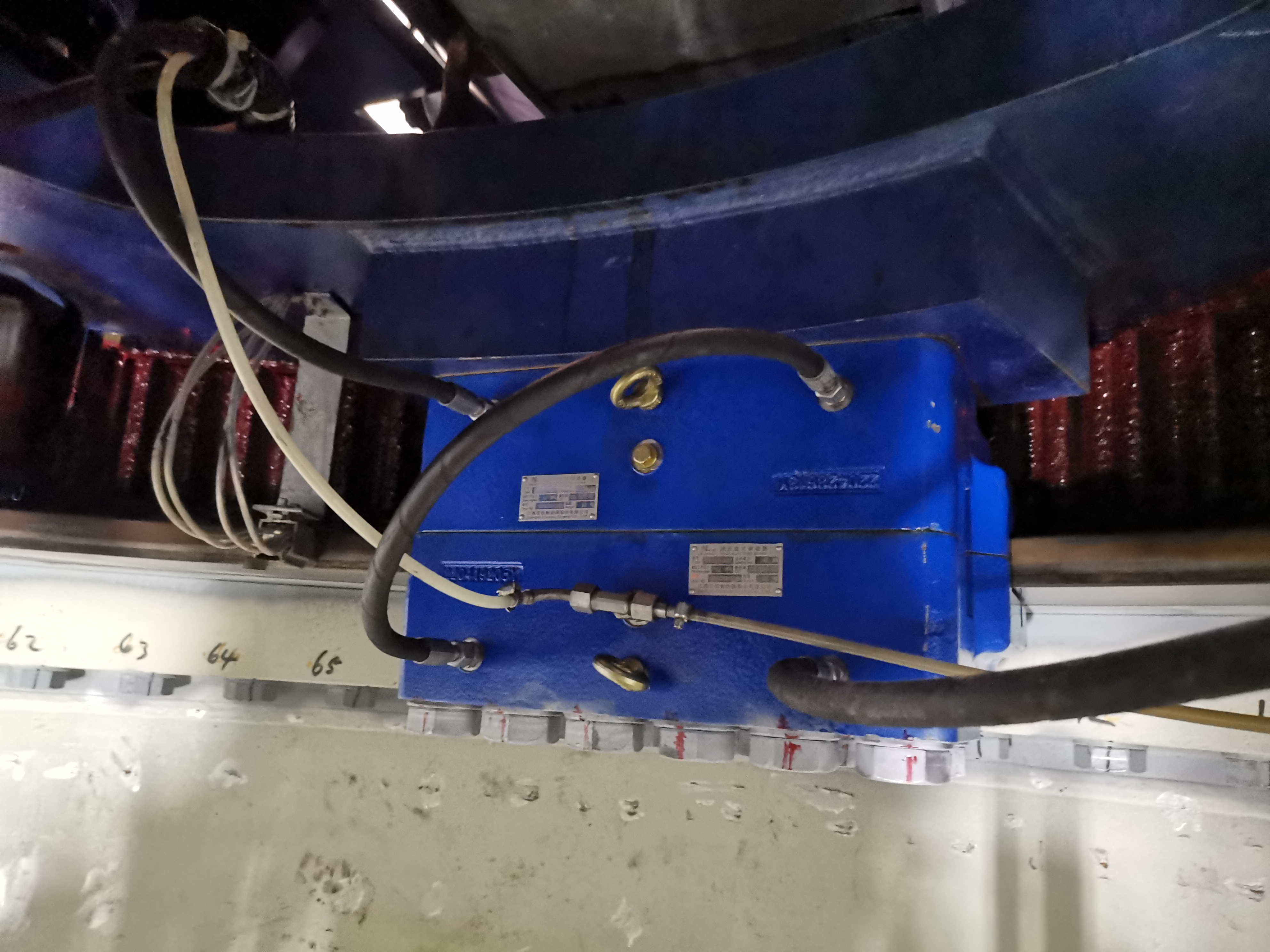 虽然公司售后服务部在此类改造项目上有着较为丰富的改造经验,但是实际工作难度依旧不小。首先是9月份疫情解除后,仍处于夏末秋初的时节,依然炎热的天气使得通风性本就不好的机舱堪比火炉,舱内温度较高。其次,更换制动器需要将原友商产品从偏航平台安装位全部拆除,然后再将我司产品从塔底吊上机组,从吊装孔位人工协作转运至偏航平台,平台空间较小,转运难度较大,且此类偏航制动器单个钳体重量约100公斤,该机型偏航制动器离平台高度约为2米,施工位置较高。最后,我司新制动器吊装搬运上机组,需将拆下的旧制动器吊钩一次运送一组制动器的上下钳体,一台风机配备6组制动器,需要花费大量的时间在工装器具和制动器的吊装上。