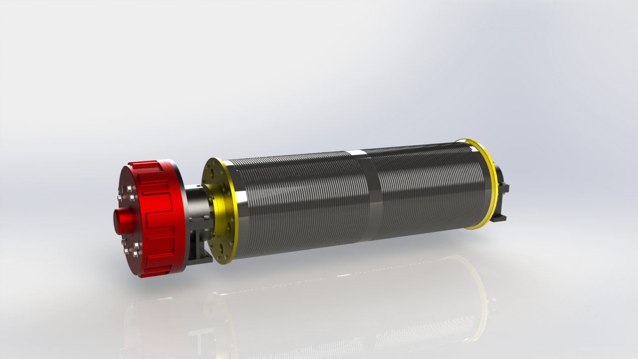 公司本次开发的半直驱起重卷筒样机,还采用了永磁电机,比变频电机有更宽的调速范围,具有悬停、低速工作、启动制动发热低等更好的性能,同时可精确地控制卷筒转动的角度,实现对钢丝绳缠绕系统驱动的吊钩组下的载荷的高度定位。