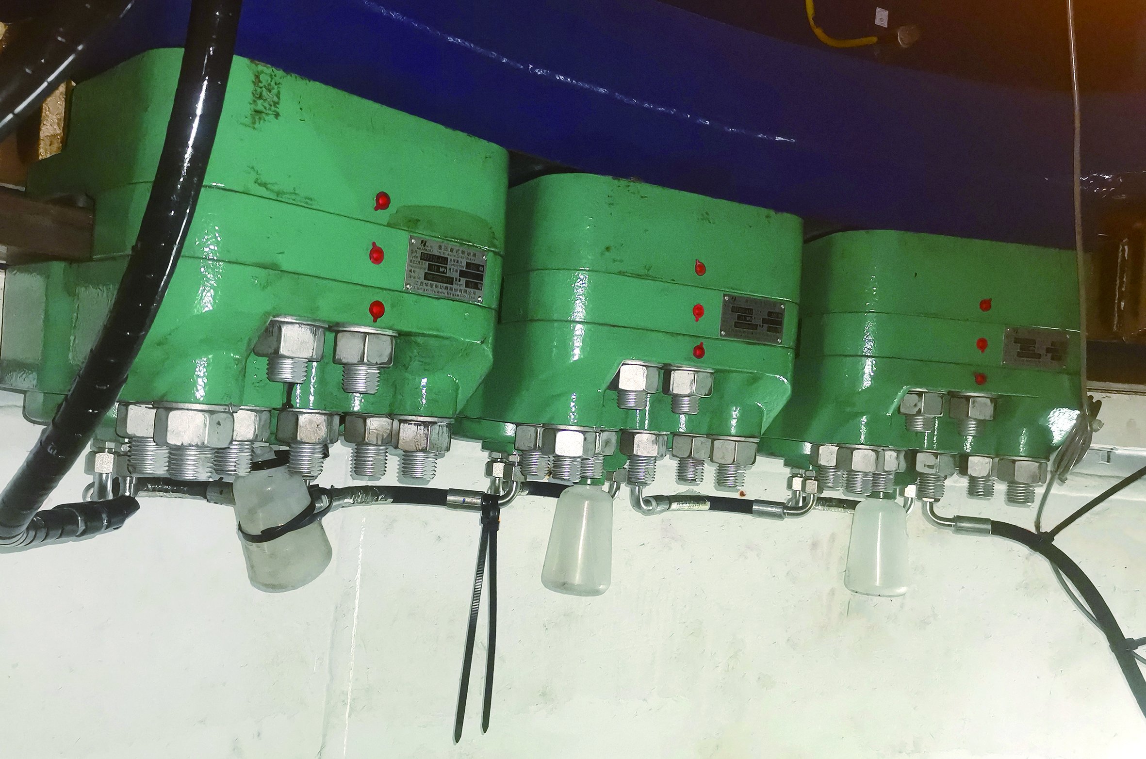 首先向大家介绍一下“SBF200-A04液压盘式浮动制动器”,该款产品是主动式制动器,分为上下钳体两部分,钳体内含活塞和制动衬垫,可用于调节制动力大小、实现衬垫磨损补偿。开工前,项目领队罗旭全师兄重点跟我们强调了施工安全,叮嘱我们要坚持“安全生产”工作方针,严格遵守“四不伤害”原则,以饱满的热情和细心的态度投入到现场施工工作中;此外,风场也对我们进行了安全培训,告知风场施工各项安全规章,让我们的安全意识进一步得到提高。
